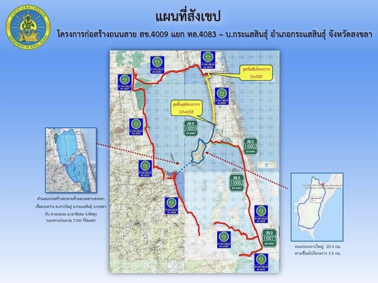 ตามนโยบายของนายศักดิ์สยาม ชิดชอบ รัฐมนตรีว่าการกระทรวงคมนาคม โดยทำการก่อสร้างถนนทางหลวงชนบท สาย สข.4009 แยก ทล.4083 – บ้านกระแสสินธุ์ อำเภอกระแสสินธุ์ จังหวัดสงขลา มีจุดเริ่มต้นโครงการบริเวณ กม.ที่ 0+000 เลียบตามแนวชายฝั่งทิศตะวันออกเฉียงเหนือของทะเลสาบสงขลา บริเวณ อำเภอระโนด ไปสิ้นสุดโครงการบริเวณ กม.ที่ 10+655