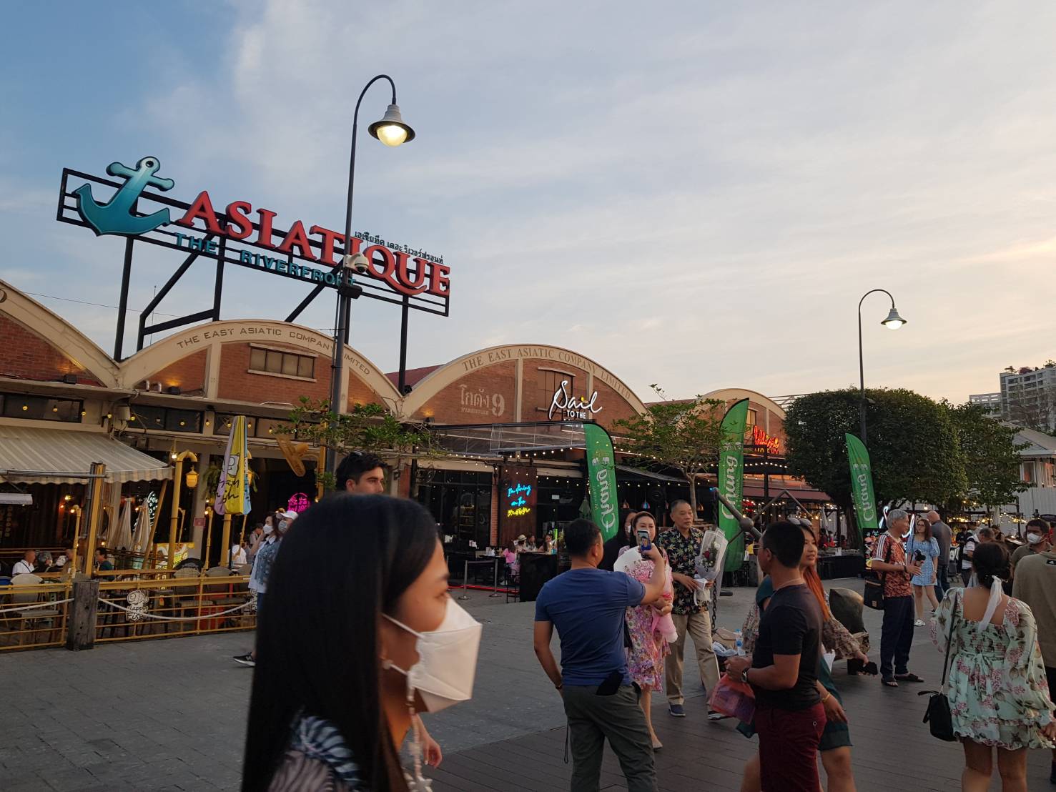บรรยากาศการฉลองวันวาเลนไทน์ ที่เอเชียทีค เดอะริเวอร์ฟร้อนท์ ในวันนี้ค่อนข้างคึกคัก มีทั้งนักท่องเที่ยวชาวไทยและชาวต่างชาติเดินทางมาอย่างต่อเนื่อง ส่วนหนึ่งจองร้านอาหารริมน้ำชื่นชมบรรยากาศช่วงยามเย็น โดยเดินทางมาทั้งแบบเป็นคู่รัก และครอบครัว ในขณะที่ร้านค้าต่างๆมีคอยให้บริการอย่างต่อเนื่อง รวมถึงร้านของฝากของที่ระลึกรองรับนักท่องเที่ยวต่างชาติด้วย ซึ่งส่วนใหญ่บรรยากาศค่อนข้างผ่อนคลายนักท่องเที่ยวไม่ได้สวมใส่หน้ากากอนามัยแล้ว