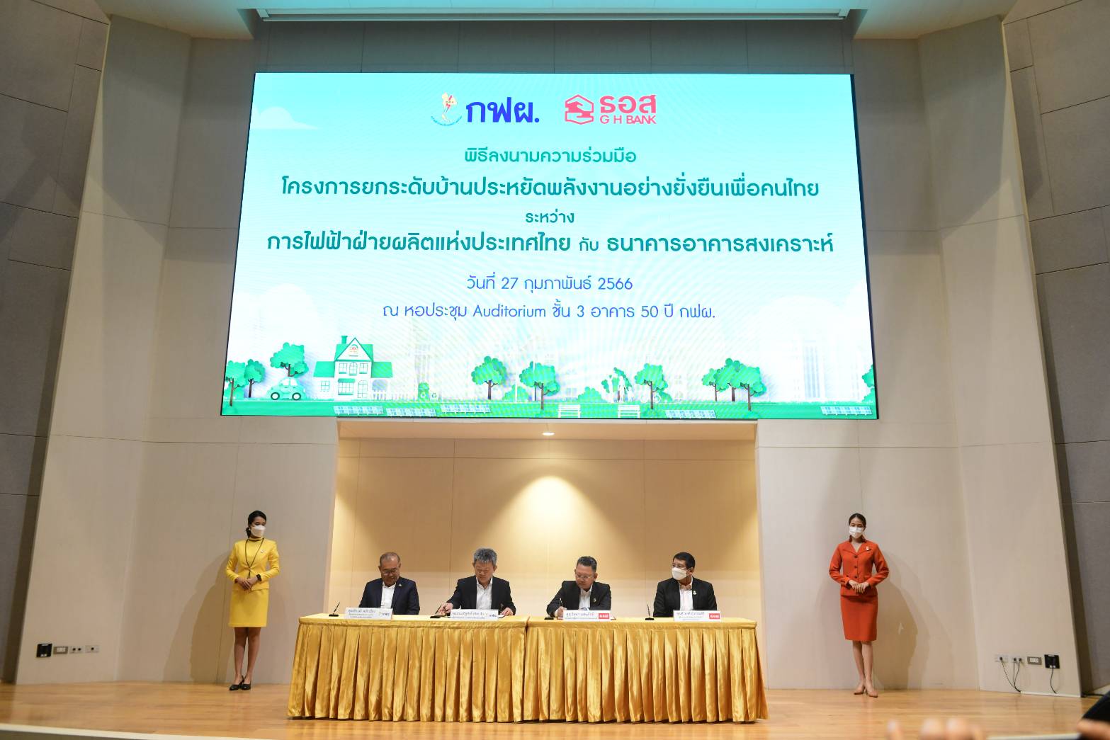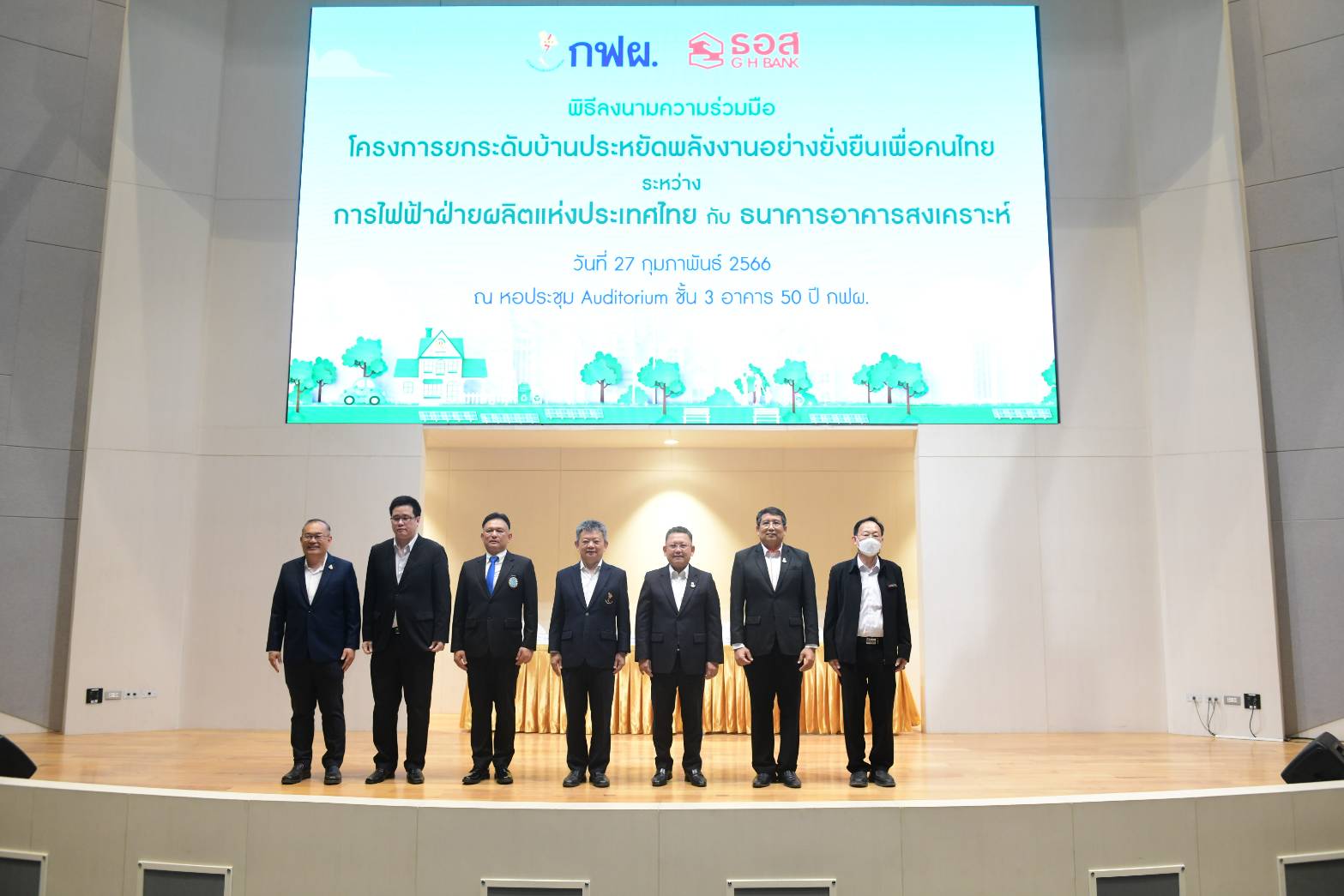 กฟผ. มุ่งมั่นยกระดับการดำเนินโครงการดังกล่าว จึงร่วมมือกับ ธอส. สนับสนุนการให้บริการทางการเงิน เพื่อส่งเสริมและผลักดันกลุ่มผู้ประกอบการพัฒนาอสังหาริมทรัพย์ ลงทุนพัฒนาที่อยู่อาศัยประหยัดพลังงานและเป็นมิตรกับสิ่งแวดล้อม รวมทั้งเป็นการกระตุ้นให้เกิดการเลือกซื้อบ้านที่อยู่อาศัยประสิทธิภาพสูงแก่ประชาชนทั่วไป