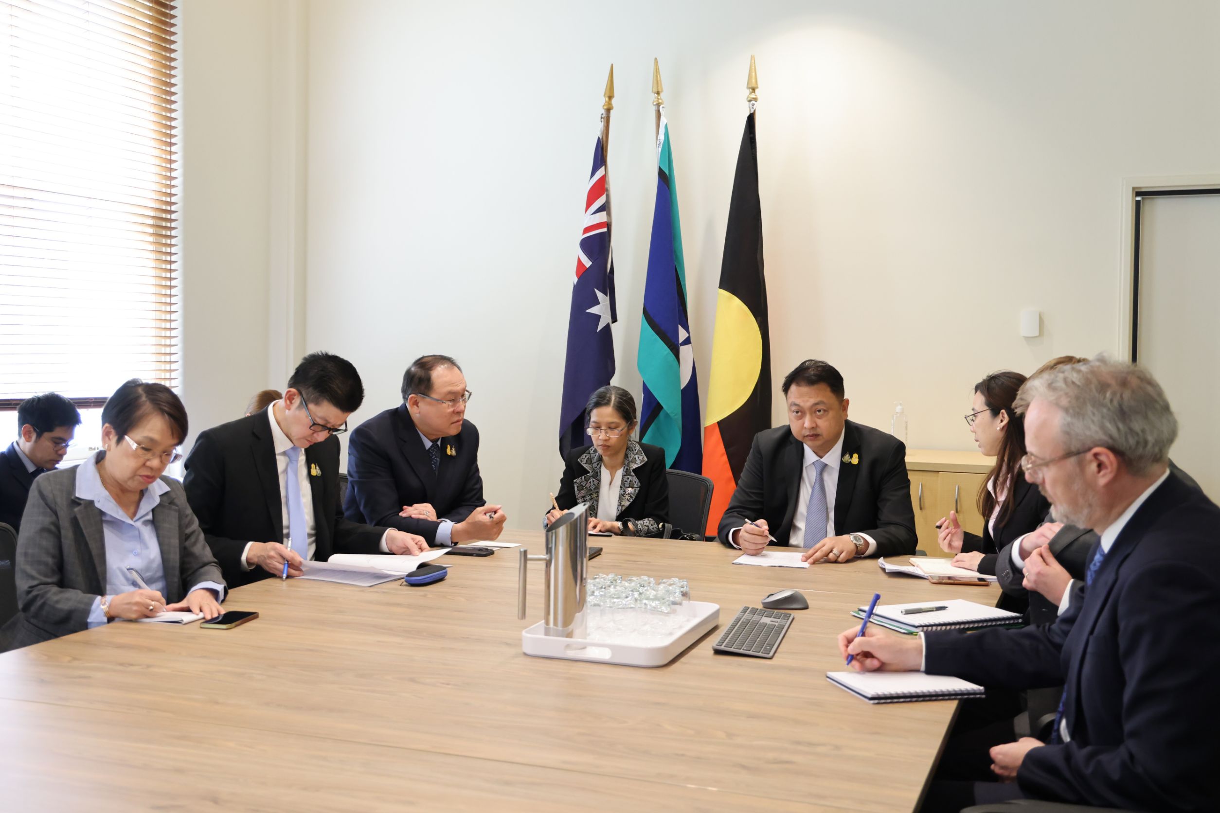 นายสุชาติ ชมกลิ่น รัฐมนตรีว่าการกระทรวงแรงงาน พร้อมด้วย นายสุรชัย ชัยตระกูลทอง ผู้ช่วยรัฐมนตรีประจำกระทรวงแรงงาน นายบุญชอบ สุทธมนัสวงษ์ ปลัดกระทรวงแรงงาน นางสาวอาจารีย์ ศรีรัตนบัลล์ เอกอัครราชทูต ณ กรุงแคนเบอร์รา และผู้บริหารระดับสูงกระทรวงแรงงาน เข้าพบ ฯพณฯ เบรนดัน โอคอนเนอร์ รัฐมนตรีด้านทักษะและการฝึกอบรม กระทรวงการจ้างงานและแรงงานสัมพันธ์ ประเทศออสเตรเลีย และ ฯพณฯ แอนดริว จ้าวส์ (Hon Andrew Giles) รัฐมนตรีด้านการตรวจคนเข้าเมือง สถานะพลเมือง และกิจการพหุวัฒนธรรม ประเทศออสเตรเลีย เพื่อหารือประเด็น ความต้องการแรงงานไทยในภาคอุตสาหกรรม และภาคบริการอื่นๆ เพื่อขยายตลาดแรงงานไทยในออสเตรเลีย ณ นครเมลเบิร์น