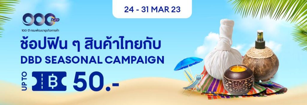 นายทศพล ทังสุบุตร อธิบดีกรมพัฒนาธุรกิจการค้า กระทรวงพาณิชย์ เปิดเผยว่า กรมพัฒนาธุรกิจการค้าร่วมมือกับ 4 แพลตฟอร์ม e-Commerce ได้แก่ Shopee และ Lazada ผู้ให้บริการด้านขนส่ง ได้แก่ Shippop และ Ninjavan จัดแคมเปญ Seasonal Campaign กิจกรรมแจกส่วนลดราคาสินค้าและค่าขนส่ง โดยเริ่มขึ้นเป็นปีแรกและจะจัดขึ้น 4 ครั้ง โดยกิจกรรมจัดขึ้นภายใต้ชื่อ “Summer ช็อปของไทย ใช้ของชุมชน” มอบโปรโมชั่นส่วนลดสินค้าและค่าขนส่งให้ผู้บริโภคเลือกซื้อสินค้าได้ในราคาประหยัด