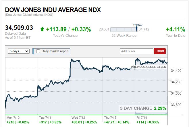 ดาวโจนส์ปิดที่ 34,509.03 จุด เพิ่มขึ้น 113.89 จุด หรือ +0.33%