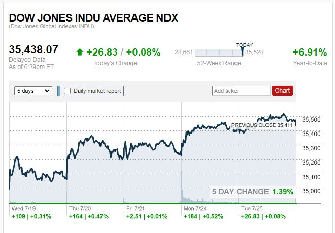 ดาวโจนส์ปิดที่ 35,438.07 จุด เพิ่มขึ้น 26.83 จุด หรือ +0.08%