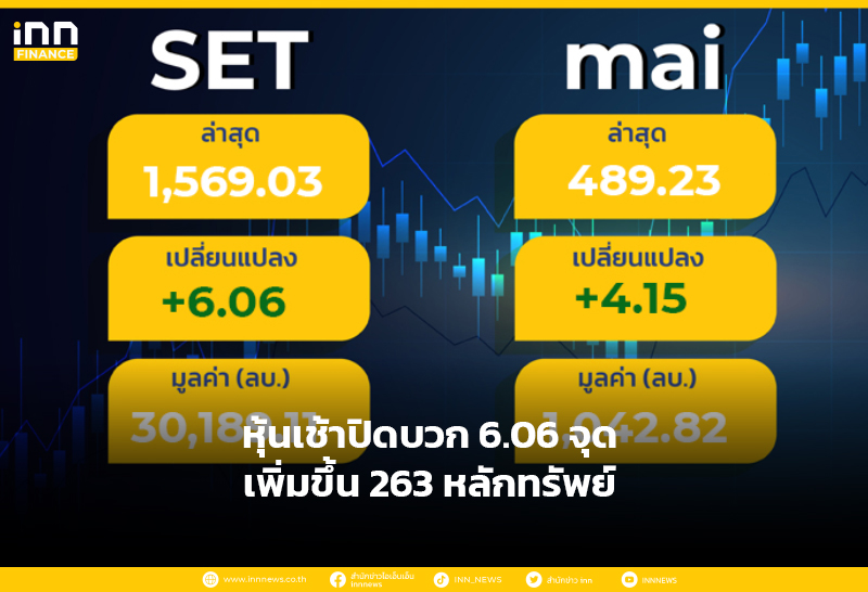 หุ้นเช้าปิดบวก 6.06 จุด เพิ่มขึ้น 263 หลักทรัพย์