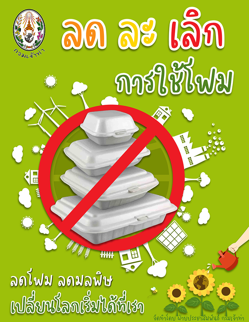 2. ห้ามเจ้าหน้าที่กรมเจ้าท่าใช้โฟมบรรจุอาหารในการจัดกิจกรรมภายในกรมเจ้าท่า ทั้งในส่วนกลาง และส่วนภูมิภาค