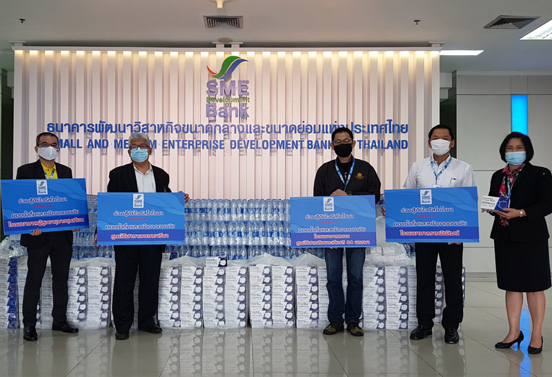 ธนาคารพัฒนาวิสาหกิจขนาดกลางและขนาดย่อมแห่งประเทศไทย (ธพว.) หรือ SME D Bank ทั้งผู้บริหาร และพนักงาน รวมถึง ประชาชนผู้มีจิตอาสา ประสานใจสู้ภัยวิกฤตโควิด-19 ร่วมกันบริจาคสมทบทุน เพื่อจัดซื้อน้ำดื่ม จำนวน 8,592 ขวด และหน้ากากอนามัย 48,000 ชิ้น รวมถึง รับบริจาคสิ่งของจำเป็นต่าง ๆ ภายใต้โครงการด้านความรับผิดชอบต่อสังคม (CSR) เพื่อนำไปกระจายมอบให้แก่โรงพยาบาล โรงพยาบาลสนาม และบุคลากรทางการแพทย์ ที่กำลังดูแลผู้ป่วยโควิด-19 ได้แก่ โรงพยาบาลผู้สูงอายุบางขุนเทียน เขตบางขุนเทียน, โรงพยาบาลราชพิพัฒน์ เขตทวีวัฒนา, สนามกีฬาเฉลิมพระเกียรติ 84 พรรษา เขตบางบอน และ ศูนย์กีฬาบางกอกอารีนา เขตหนองจอก โดยธนาคารขอขอบพระคุณ บุคลากรทางการแพทย์ และผู้ที่มีส่วนเกี่ยวข้องในการปฏิบัติหน้าที่อันสำคัญยิ่งอยู่ในเวลานี้ พร้อมเป็นกำลังใจให้ชาวไทยทุกท่านก้าวผ่านสถานการณ์ครั้งนี้ไปได้ด้วยดี