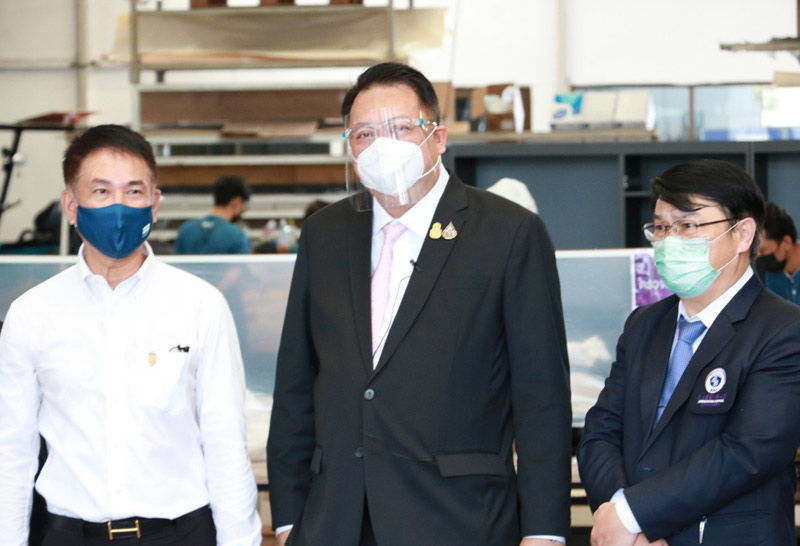 รัฐมนตรีฯสุชาติ ลงพื้นที่นนทบุรี ดูการตรวจโควิด-19 เชิงรุกแรงงานในสถานประกอบการ พร้อมให้กำลังใจลูกจ้างและเจ้าหน้าที่