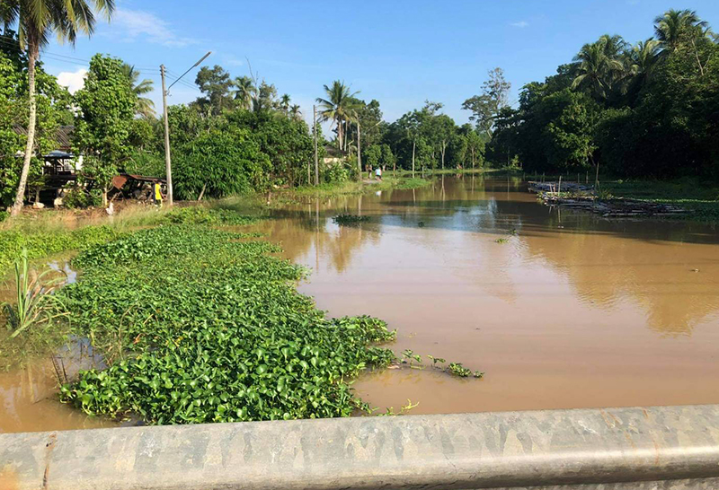 ล่าสุดเมื่อช่วงเช้าที่ผ่านมาผู้สื่อข่าวได้ลงสำรวจพื้นที่ซึ่งเป็นเส้นทางน้ำไหลผ่านพบว่าขณะนี้น้ำได้เอ่อล้นตลิ่งเข้าท่วมในชุมชนบ้านทุ่ง เขตเทศบาลเมืองสะเดา ถนนทางเข้าหมู่บ้านถูกน้ำท่วมระดับน้ำสูง10-20 เซนติเมตร รถยังเข้าออกได้ รวมทั้งยังท่วมสวนยางพารา และมีบ้านเรือนของชาวบ้านหลายหลังที่เสี่ยงน้ำไหลเข้าบ้าน ชาวบ้านต้องขนย้ายสิ่งของไว้ที่สูงโดยเฉพาะรถยนต์และรถจักรยานยนต์