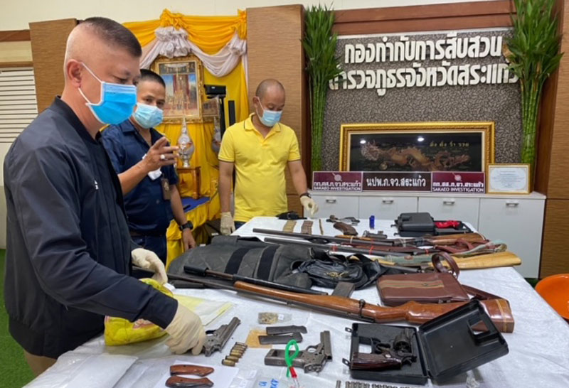 ผบก.ภ.จว. สระแก้ว แถลง รวบพ่อค้ายา พร้อมคลังแสงอาวุธปืนหลายชนิด และกระสุนเพียบ