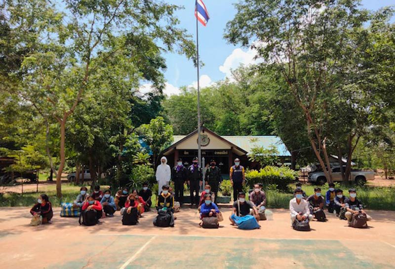 พร้อมผู้นำพาชาวกัมพูชา กำลังอีกสาย ได้ออกตรวจ มาถึงบริเวณบ้านทัพเซียมและบริเวณบ้านหนองหญ้าแก้ว ได้ตรวจพบกลุ่มแรงงานเช่นกัน บนถนนลูกรัง อยู่ห่างจากถนนสายหลัก 200 เมตร บ้านทัพเซียม ต.ตาพระยา อ.ตาพระยา จ.สระแก้ว เจ้าหน้าที่ จึงได้แสดงตัวเพื่อขอตรวจค้น พบเป็นคนต่างด้าวสัญชาติกัมพูชา 23 คน (ช.14 ญ.9 ) โดยทั้งหมดสวมหน้ากากอนามัยกันทุกคน จึงได้ขอตรวจสอบเอกสารการเข้ามาในประเทศ ไม่พบเอกสารการเข้าเมืองมาแสดงได้ เจ้าหน้าที่จึงได้จับกุม และควบคุมตัว มาสอบสวนเพิ่มเติมที่ร้อย.ฉก.ตชด.3 และจากการสอบสวน ทราบว่า เริ่มออกเดินเท้ามาจากกัมพูชาตั้งแต่เมื่อวาน โดยมีคนนำพาเป็นชาวเขมร พาเดินเข้ามา จากบ้านแต้ ต.สวายเจ็ก อ.สวายเจ็ก จ.บันเตียนเมียนเจย