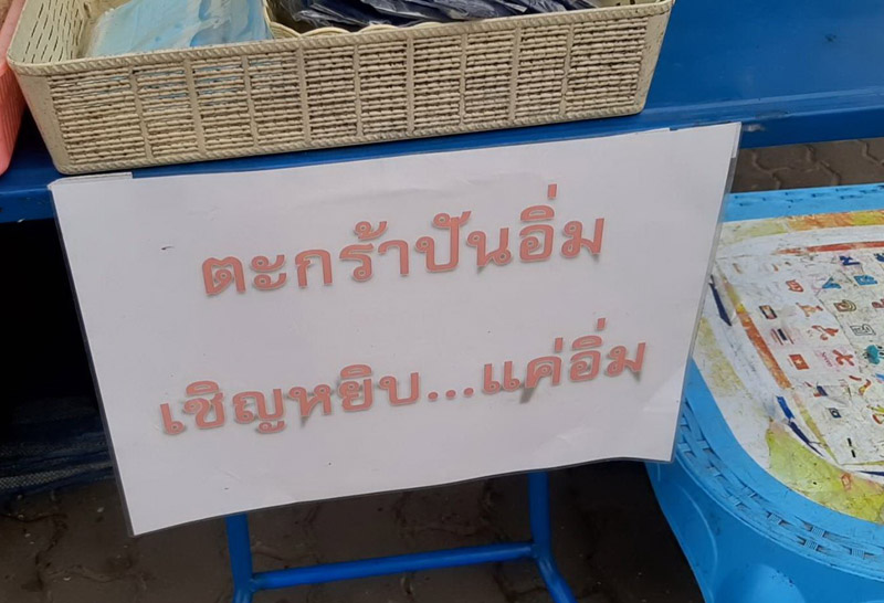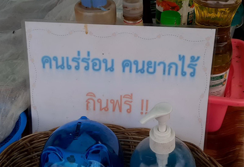 ผู้สื่อข่าวรายงานว่ามีเรื่องราวน่าสุดประทับใจที่ อ.ปักธงชัย จ.นครราชสีมา เป็นเรื่องราวของแม่ค้าร้านอาหารตามสั่งแห่งหนึ่ง ตั้งอยู่หน้าธนาคารกสิกรไทย สาขา อ.ปักธงชัย เปิดเป็นร้านอาหารตั้งขายชั่วคราวบนฟุตบาท ราคาเริ่มต้นตั้งแต่ 15 บาทจนไปถึง 40 บาท แต่ที่น่าประทับใจสุดๆ คือ แบ่งปันให้คนเร่ร่อนและคนยากไร้ ได้ทานฟรี และยังมีโต๊ะปันสุขมอบสิ่งของ ข้าวสารอาหารแห้งให้กับผู้คนที่ผ่านไปผ่านมา หรือผู้ที่มีความลำบาก สามารถมาหยิบไปได้