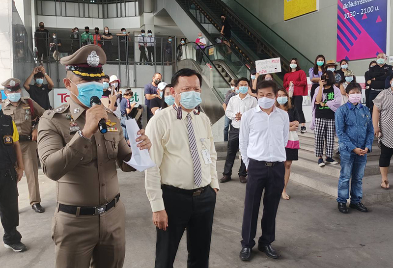 นาย นาย ธีรพัฒน์ วัฒนะรุ่งโรจน์ อายุ 38 ปี ตัวแทน ผู้ประกอบการร้านค้าใน ห้างดังย่านรังสิต อำเภอลำลูกกา จังหวัดปทุมธานี มีการรวมตัวของกลุ่มผู้ค้าประมาณ 500 คน บริเวณหน้าห้างดัง โดยมีกำลังเจ้าหน้าตำรวจจาก สภ.คูคต เข้าดูแลความเรียบร้อย