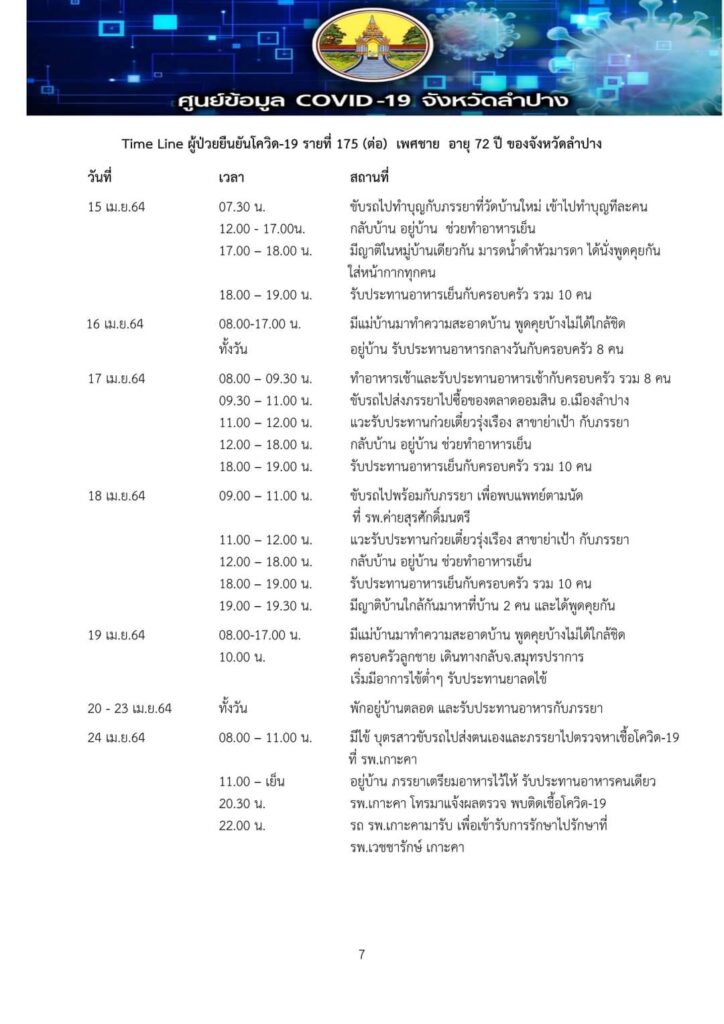 นายณรงค์ศักดิ์ โอสถธนากร ผู้ว่าราชการจังหวัดลำปาง พร้อมด้วยนายแพทย์ประเสริฐ กิจสุวรรณรัตน์ นายแพทย์สาธารณสุขจังหวัดลำปาง ได้เปิดเผยรายละเอียด กรณีมีผู้ติดเชื้อไวรัสโคโรนา2019 ของจังหวัดลำปางเสียชีวิตในวันนี้ ผู้เสียชีวิตรายที่ 2 เป็นชายไทย อายุ 72 ปี ติดเชื้อโควิด-19 จากญาติที่เดินทางมาจากต่างจังหวัด มีโรคประจำตัวคือเป็นโรคกระดูก