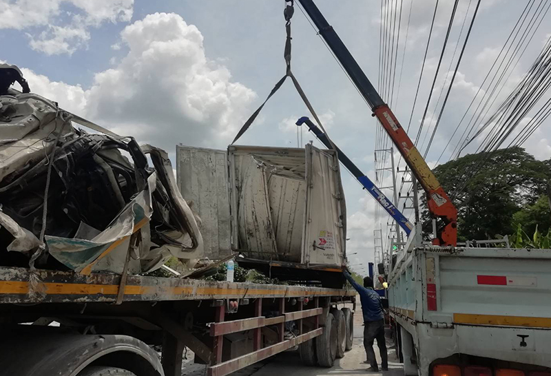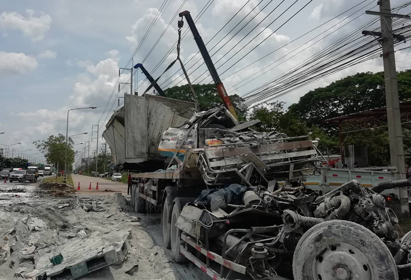 นาทีช่วยชีวิต!หนุ่มขับสิบล้อพุ่งชนเทรลเลอร์