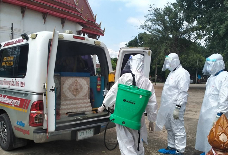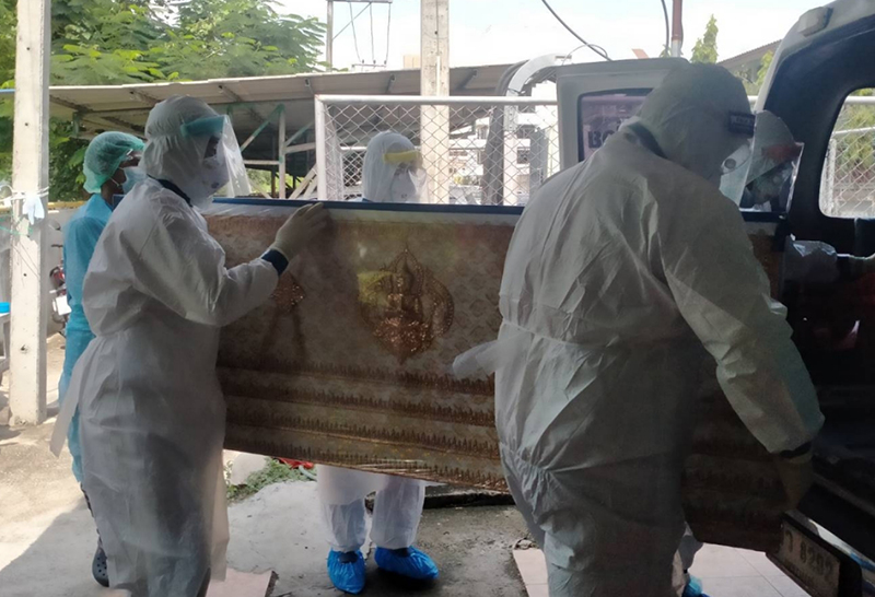 จากนั้นทางอาสากู้ภัยร่มโพธิ์เพชรบูรณ์สวมใส่ชุดป้องกันการติดเชื้อ ได้ทำการเคลื่อนศพไปทำพิธีเผาอย่างเรียบง่าย ที่เมรุวัดโพธิ์กลาง ต.ป่าเลา อ.เมืองเพชรบูรณ์ ในช่วงบ่ายวันเดียวกัน หลังเสร็จสิ้นการเผาศพดังกล่าว ทางทีมกู้อาสากู้ภัยฯพร้อมรพ.สต.ป่าเลาได้ฉีดพ่นนำยาฆ่าเชื้อโดยทันที สำหรับผู้ป่วยโควิดรายนี้นับเป็นรายที่ 2 ของจ.เพชรบูรณ์ที่เสียชีวิตเพราะติดเชื้อ โควิด-19