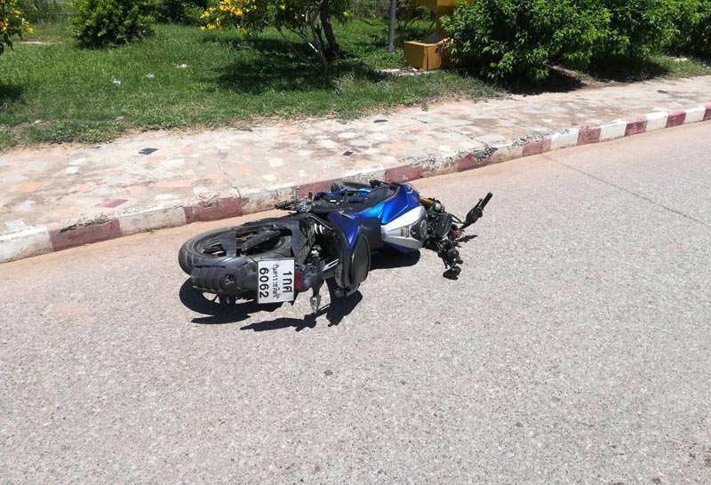 โดยภาพจากกล้องวงจรปิด จะเห็นว่า รถจักรยานยนต์ขับมาทางตรง แต่ถูกรถยนต์กระบะ ยี่ห้อโตโยต้า ไฮลักซ์วีโก้ สีดำ ทะเบียน ผล 4356 นครราชสีมา เลี้ยวตัดหน้ากระชั้นชิด จึงเกิดการเฉี่ยวชนกันขึ้น จนนายยุทธนากรฯกระเด็นหมุนหลายตลบตกจากรถมาฝั่งตรงข้าม จนหวิดโดนรถที่วิ่งสวนทางมาเหยียบซ้ำดังกล่าว ส่วนรถจักรยานยนต์ก็พลิกคว่ำไปหยุดที่ขอบฟุตบาท นับเป็นเสี้ยววินาทีความเป็นความตายของผู้ขับขี่รถจักรยานยนต์