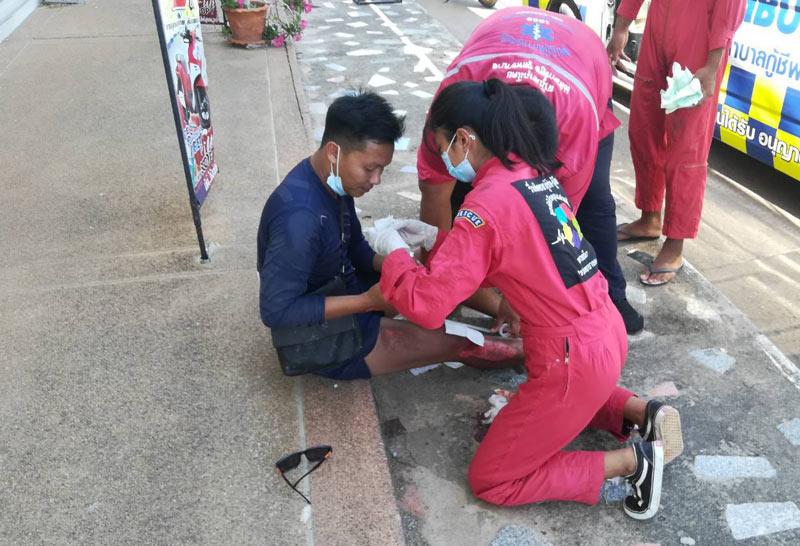 ระทึก!กระบะตัดหน้าจยย.ร่างกระเด็นหวิดรถเหยียบ
