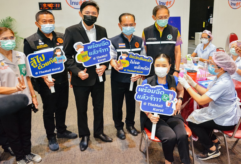 ภายในห้องเอ็มซีซีฮอลล์ ชั้น 3 เดอะมอลล์โคราช ทางกระทรวงสาธารณสุขก็ได้จัดสรรวัคซีนต้านโควิด-19 ยี่ห้อซิโนแวค มาให้ลอตแรก 5,000 โดส ซึ่งได้ทำการฉีดให้กับประชาชนไปวันแรกเมื่อวันที่24พ.ค.64 จำนวน3,000โดส เหลืออีก2,000โดส ที่กำลังฉีดให้กับประชาชน ซึ่งน่าจะหมดในวันนี้(25 พ.ค.64) แต่ตามแผนการทดสอบระบบ จะต้องฉีดให้กับประชาชน20,000โดส ซึ่งวัคซีนที่เหลืออีก15,000โดสยังมาไม่ถึง ดังนั้นทางสำนักงานสาธารณสุขจังหวัดนครราชสีมา จึงได้ประกาศขอเลื่อนการฉีดวัคซีนไปก่อน เพื่อสอบถามไปยังกระทรวงสาธารณสุข ว่าจะได้รับการจัดสรรมาให้ครบเมื่อใด