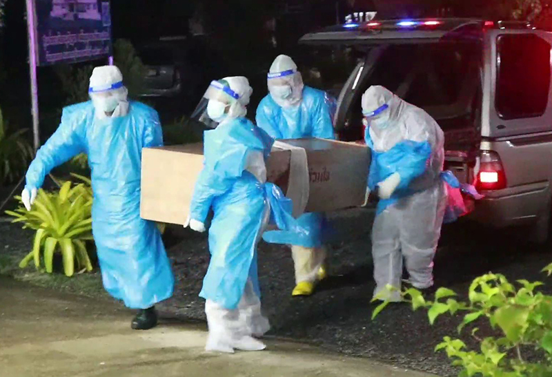 เจ้าหน้าที่เคลื่อนย้ายผู้ติดเชื้อหรือทีมสก็อต มูลนิธิประชาร่วมใจจังหวัด นครศรีธรรมราช ได้ปฏิบัติการเคลื่อนย้ายผู้เสียชีวิตจากการป่วยติดเชื้อโควิด 19 จากโรงพยาบาลมหาราชนครศรีธรรมราช เพื่อทำการฌาปนกิจทันที โดยเจ้าหน้าที่อยู่ในชุดป้องกันเชื้อหรือชุด PPE. อย่างรัดกุม ได้รับศพรายที่ 13 ของจังหวัดนครศรีธรรมราช ซึ่งเป็นชายชราอายุ 85 ปี เป็นผู้ป่วยวัยชราที่มีโรคประจำตัวร่วมหลายโรค มีภูมิลำเนาในอำเภอพระพรหม จังหวัดนครศรีธรรมราช โดยการใช้เตาเผาบนเมรุความร้อนสูงของวัดบุญนารอบ อำเภอเมืองนครศรีธรรมราช เป็นสถานที่ในการฌาปนกิจ