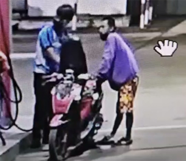 ซึ่งกล้องวงจรปิดสามารถจับภาพคนร้ายซึ่งเป็น ผู้ชายลักษณะล่ำสัน สวมเสื้อคอกลมสีขาว สะพายกระเป๋าสีดำ สวมกางเกงขาสั้น เป็นผู้เข้ามาก่อเหตุโจรกรรมรถรถจักรยานยนต์ไป สวนอีกรายซึ่งกล้องวงจรปิดจับภาพไว้ได้ มีพฤติกรรมร่วมขบวนการ เป็นผู้ชายลักษณะผอม ขับขี่รถจักรยานยนต์แบบออโตเมติก เข้าไปเติมนำมันภายในปั้ม 20 บาท ก่อนขี่ออกมา แล้วถีบดันรถรถจักรยานยนต์ที่เพื่อนโจรกรรมออกมาหลบหนีไป