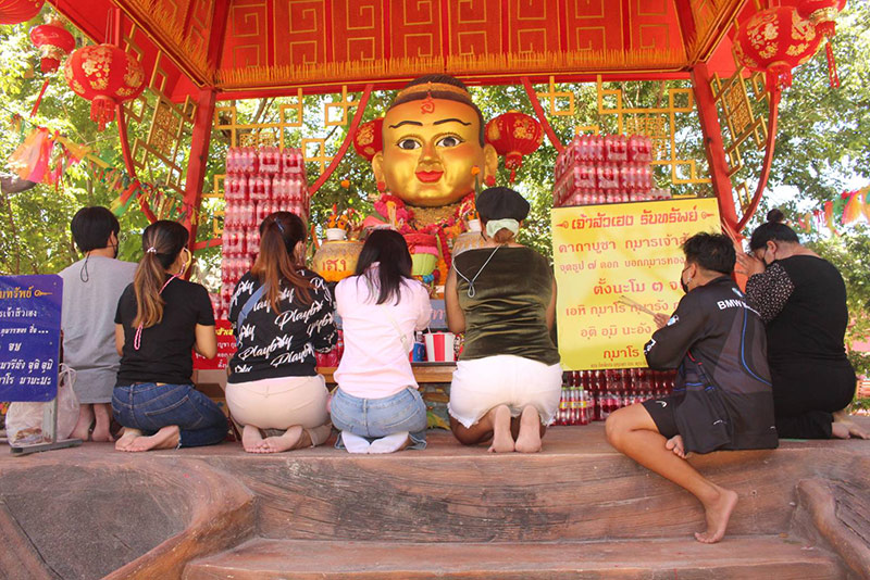 ประชาชนเดินทางมากราบไหว้สิ่งศักดิ์สิทธิ์ ขอพร แห่ส่องเลขเด็ดอ่างน้ำมนต์เจ้าสัวเฮงอาศรมฤๅษีเณรปทุมธานี