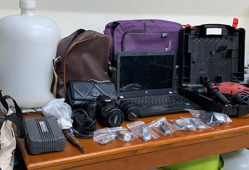 และจากการสอบสวนขยายผลทั้งคืน และตามไปยึดของกลางที่ขโมยไปคืนมาได้บางส่วน เช่นโน้ตบุ๊ค นาฬิกา เครื่องมือช่าง กล้องถ่ายรูป และอีกหลายอย่างรวมมูลค่าประมาณ 8 หมื่นบาท และมีทรัพย์สินอีกบางส่วน เช่น นาฬิกา ที่ถูกขายไปแล้ว