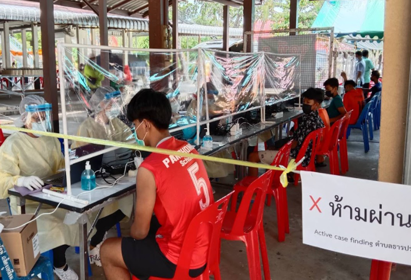 ภายในวัดตลาดแค อำเภอโนนสูง จังหวัดนครราชสีมา สำนักงานสาธารณสุขจังหวัดนครราชสีมา ร่วมกับสำนักงานป้องกันควบคุมโรคที่ 9 จังหวัดนครราชสีมาและโรงพยาบาลโนนสูง ระดมเจ้าหน้าที่สาธารณสุขออกให้บริการตรวจคัดกรองหาเชื้อเชิงรุกให้กับกลุ่มนักเรียน พ่อค้า แม่ค้า และประชาชนกลุ่มเสี่ยงที่อาศัยอยู่ในชุมชนตลาดแค อำเภอโนนสูง จังหวัดนครราชสีมา สืบเนื่องจากตรวจพบผู้ป่วยติดเชื้อไวรัสโคโรนา 2019 คลัสเตอร์งานบุญขึ้นบ้านใหม่ในช่วงเดือนพฤษภาคมที่ผ่านมา จำนวน 7 ราย มีความเสี่ยงสูงสัมผัสกับประชาชนรายอื่นจำนวนมาก หวั่นจะเกิดการระบาดคลัสเตอร์ใหม่ จึงต้องรีบคัดกรองหาเชื้อกลุ่มเสี่ยงสัมผัสเชื้อเชิงรุกโดยเร็ว เพื่อสกัดการแพร่กระจายของเชื้อ