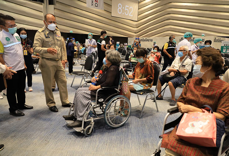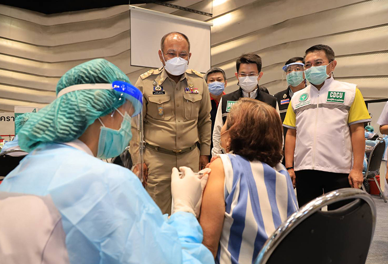 พล.ต.อ.อัศวิน ขวัญเมือง ผู้ว่าราชการกรุงเทพมหานคร ลงพื้นที่ตรวจเยี่ยมจุดบริการฉีดวัคซีนนอกโรงพยาบาล 3 จุดจาก25จุด ที่เปิดให้บริการพร้อมกันวันนี้เป็นวันแรก จุดแรกที่หอประชุมใหญ่ มหาวิทยาลัยหอการค้า เปิดให้บริการตั้งแต่ 09.00 น. -16.00 น. โดยตั้งเป้าหมายในการให้บริการฉีดวัคซีน 500 คน/วัน จุดต่อมาคือธนาคารไทยพาณิชย์สำนักงานใหญ่และจุดสุดท้ายไอคอนสยาม เปิดให้บริการตั้งแต่เวลา 10.00 – 18.00 น. ตั้งเป้าให้บริการฉีดวัคซีน 600คน/วัน โดยมีทีมแพทย์พยาบาลจาก รพ.ศิริราชเป็นผู้ดูแล