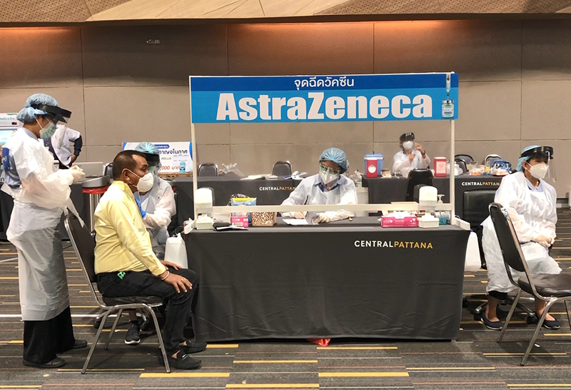 สำหรับผู้ประกันซึ่งเจ้าหน้าที่ได้จัดจุดบริการตามขั้นตอนต่างๆ ตั้งแต่จุดลงทะเบียนตรวจสอบรายชื่อตลอดจนจุดคัดกรองและจุดฉีดวัคซีนและจุดนั่งพักเป็นเวลา 30 นาที โดยจะมีรอบฉีดวัคซีนตั้งแต่ 07.30 -15.30 น.