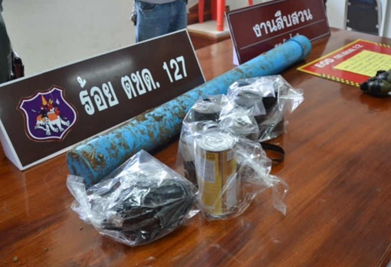พบว่าเป็นระเบิดชนิดขว้างสังหาร 9 ลูก โดยลูกระเบิดได้บรรจุอยู่ในกล่องเหล็ก และซุกซ่อนไว้อีกชั้น ในท่อน้ำ PVC ฝังดินอยู่ใต้ต้นมะพร้าว จึงให้เจ้าหน้าที่เก็บกู้วัตถุระเบิดทำการเก็บกู้