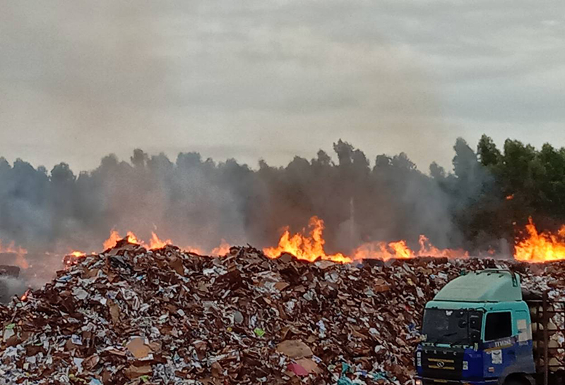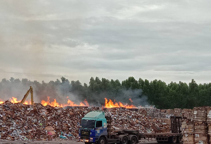 ไฟไหม้กองกระดาษอัดแท่งของ บริษัท RCP. จำกัด ไหม้เกรียม 3,500 ตันระดมรถดับเพลิงกว่า 20
