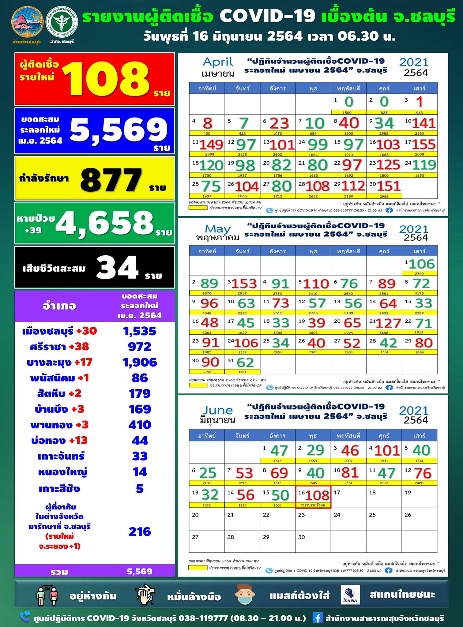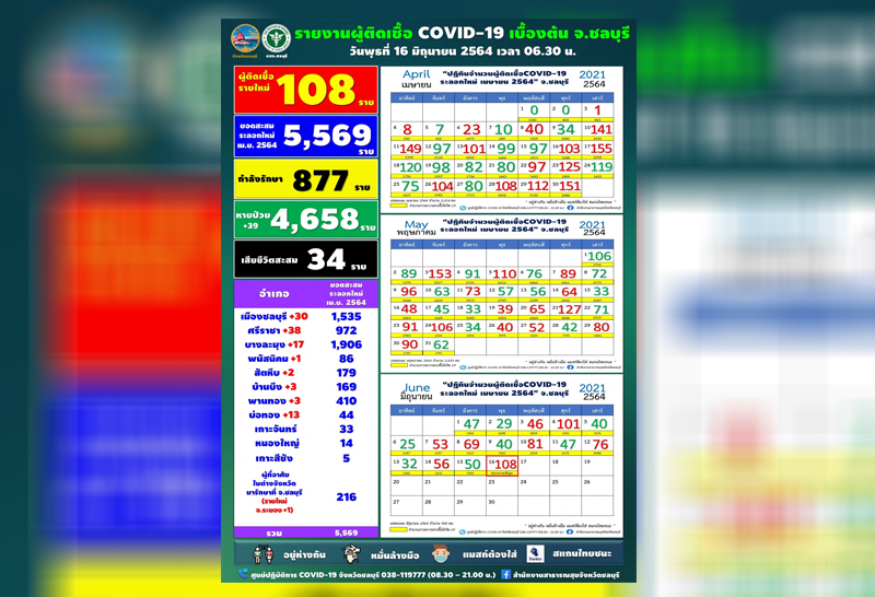 จังหวัดชลบุรีพบผู้ติดเชื้อโควิด-19 เพิ่ม 108 ราย ค้นหาผู้สัมผัสเสี่ยงทั้งหมด 307 ราย ค้นหาเชิงรุกเบื้องต้น 100 กว่าคน