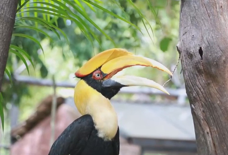 นกเงือก ที่สวนสัตว์นครราชสีมา รณรงค์ชวนฉีดวัคซีนโควิด-19 ให้เสี่ยงทายเลือกแอสตร้าเซเนก้า