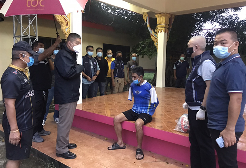 และตำรวจได้สืบสวนตามแกะรอยจนจับกุมได้ขณะนี้มากบดานอยู่ในพื้นที่อ.หาดใหญ่ โดยพักอยู่ที่สวนชารีสอร์ทในต.คลองแห อ.หาดใหญ่ จ.สงขลา ตำรวจจึงไปเฝ้าติดตามตัวอยู่นาน3 วัน จนจับกุมตัวได้พร้อมของกลางรองเท้าผ้าใบสีแดง 1 คู่ เสื้อยืดสีเทา 1 ตัวกางเกงยีนส์ ขายาว 1 ตัว ที่สวมใส่ขณะก่อเหตุ ส่วนปืนลูกซองยาวที่ก่อเหตุอ้างว่ายืมเพื่อนมาและส่งคืนไปแล้ว