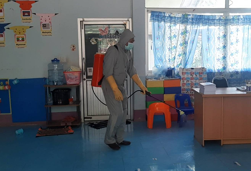 ผู้สื่อข่าวรายงานว่า เจ้าหน้าที่กองสาธารณสุขและสิ่งแวดล้อม เทศบาลตำบลเสิงสาง ได้จัดชุดอุปกรณ์ ฉีดพ่นทำความสะอาด ฆ่าเชื้อโรค ตามอาคารต่างๆ ภายในโรงเรียนภูริตา ต.กุดโบสถ์ อ.เสิงสาง จ.นครราชสีมา ภายหลังจากที่ทราบว่า ได้มีผู้ปกครองของเด็กนักเรียนชั้นอนุบาล ของโรงเรียนแห่งนี้ติดเชื้อไวรัสโควิด-19 และส่งลูกเข้ามาเรียนหนังสือตามปกติ