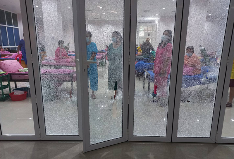โดยที่เกิดเหตุบริเวณชั้นล่างใกล้ประตูทางเข้าพบผู้เสียชีวิตเป็นชาย 1 ราย ยังไม่ทราบชื่อและเป็นผู้ติดเชื้อโควิด-19 ถูกยิงด้วยอาวุธปืนไม่ทราบขนาด และที่กระจกทางเข้าถูกยิงจนแตกเช่นกัน และบริเวณรอบๆภายในโรงพยาบาลสนาม ยังพบปลอกกระสุนปืน และหัวกระสุนปืนตกอยู่จำนวนหลายปลอก