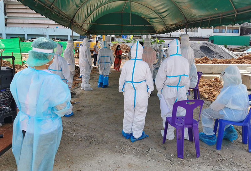 ขณะเดียวกัน นายไมตรี ไตรติลานันท์ ผู้ว่าราชการ จ.ฉะเชิงเทรา ได้เร่งสั่งการให้เจ้าหน้าที่จาก สสจ.ฉะเชิงเทรา รพ.พุทธโสธร และ สำนักงานสาธารสุข อ.เมืองฉะเชิงเทรา ลงพื้นที่ไปคัดกรองแยกกลุ่มผู้ป่วยตามอาการยังที่บริเวณแคมป์คนงานก่อสร้าง ข้างห้างสรรพสินค้าโรบินสันฉะเชิงเทรา ซึ่งมีการตรวจพบผู้ป่วยโควิด 19 จำนวน 117 ราย จากแรงงานต่างด้าวชาวกัมพูชาและเมียนมาทั้งหมด จำนวน 202 คน เพื่อควบคุมไม่ให้มีอาการรุนแรง