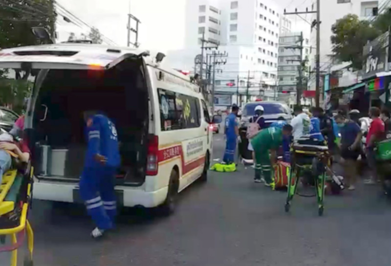 และทำให้ผู้ขับขี่รถจักรยานยนต์ ได้รับบาดเจ็บทั้งหมด 6 คน อาการหนัก 2 คน คือ น.ส.ฐิติรัตน์ อายุ 38ปี และนายอาซอลิบ อายุ 26 ปี และบาดเจ็บเล็กน้อย อีก 4 คน หน่วยกู้ภัยมูลนิธิมิตรภาพสามัคคีหาดใหญ่ ต้องระดมเจ้าหน้าที่กู้ภัยและรถพยาบาลมาช่วยเหลือผู้บาดเจ็บ และส่งรักษาตัวที่โรงพยาบาลหาดใหญ่