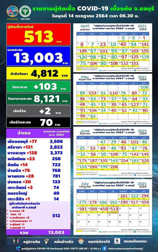 ชลบุรีติดโควิดเพิ่มอีก513