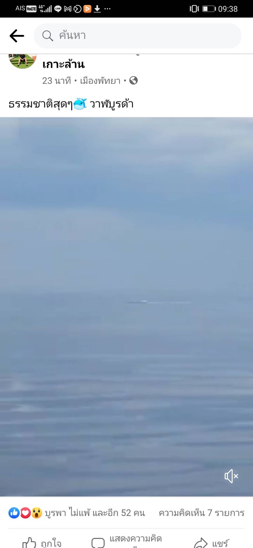 มีผู้ใช้เฟซบุ๊กชื่อ toretto kohlarn ได้โพสต์ข้อความพร้อมภาพวีดีโอ “ธรรมชาติสุดๆ วาฬบูรด้า ” พร้อมมีเสียงในภาพตื่นเต้นมาก เพราะนานๆครั้งปลา วาฬบูรด้า จะขึ้นมาให้เห็น ทำให้เจ้าตัวตื่นเต้นมากเพราะขึ้นมาเล่นน้ำ 2-3 ตัวกลางอ่าวพัทยา ช่วงพัทยาไปเกาะล้าน