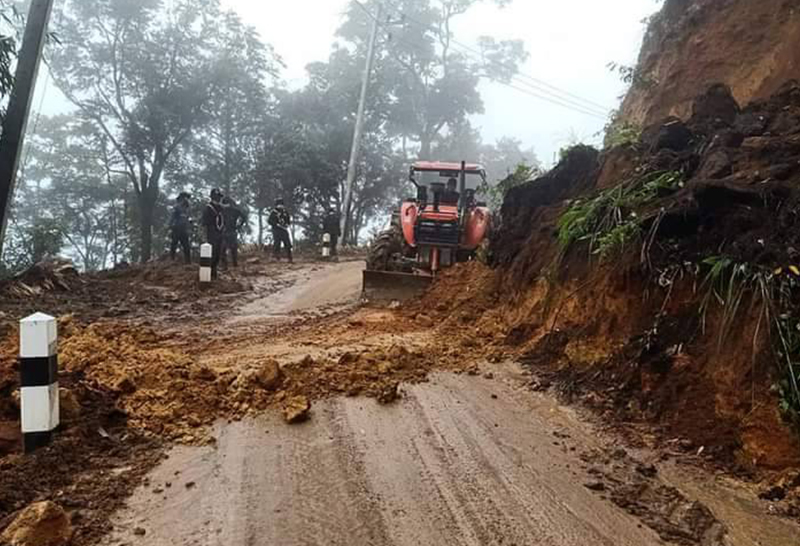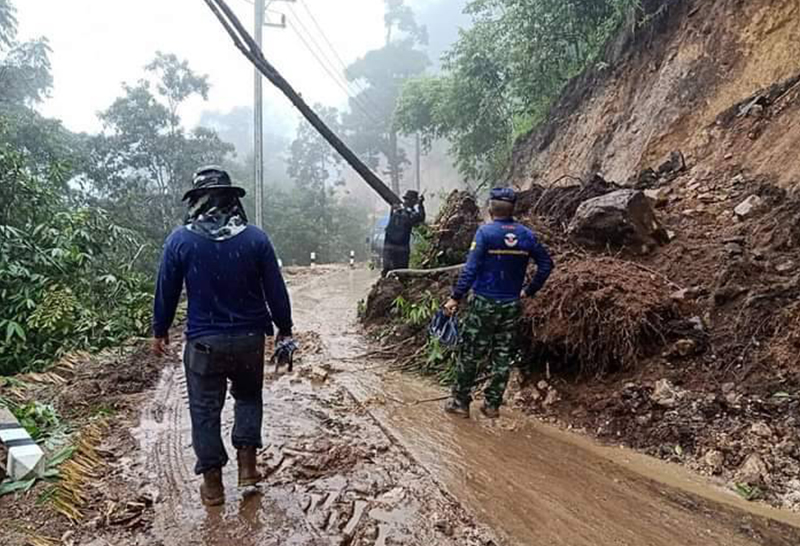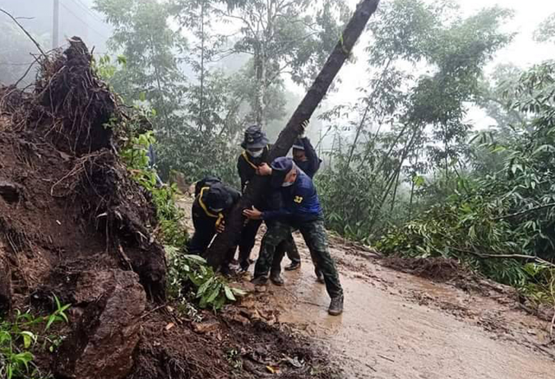 ตากพายุฝนตกหนัก เหตุดินสไลด์ ต้นไม้ใหญ่ล้ม ปิดเส้นทางจราจร บน ถนนโครงการหลวงเลอตอ – ถนน พังเสียหายหลายแห่ง