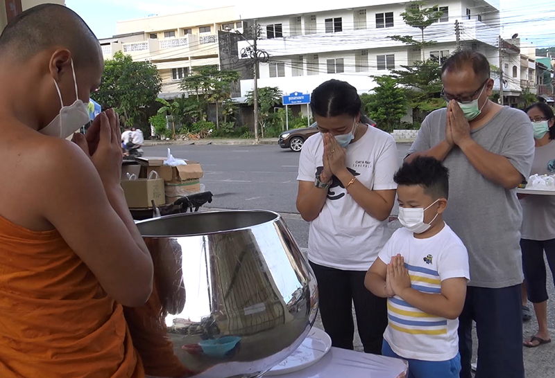 ชาวสงขลาออกมาทำบุญตักบาตรถวายเป็นพระราชกุศล เนื่องในโอกาสมหามงคลวันเฉลิมพระชนมพรรษา 28 กรกฎาคม 2564