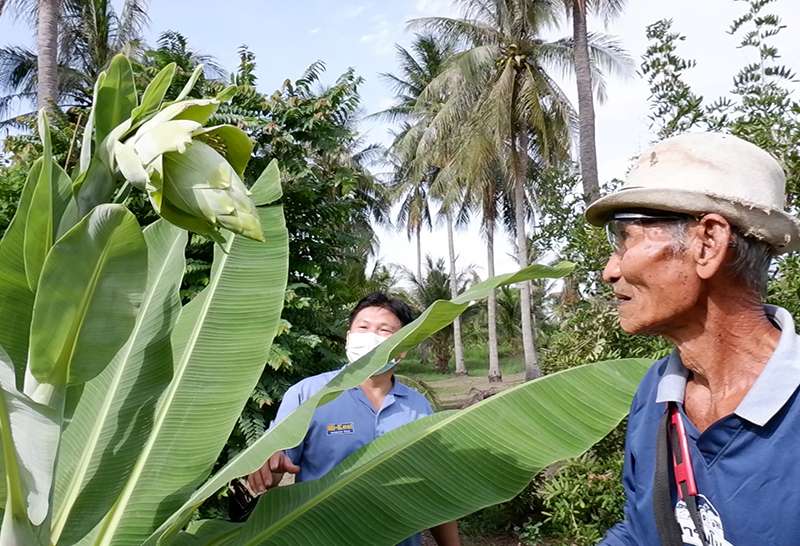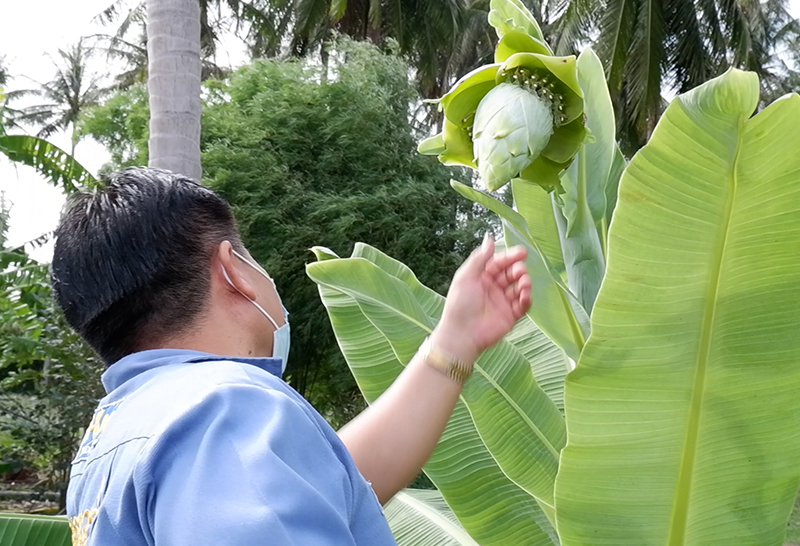 ลุงทองชุบ เล่าให้ฟังว่า นำกล้วยต้นกล้วยนี้มาปลูกเมื่อ 5 ปีที่แล้ว หลานชายไปเที่ยวเมืองกาญจนบุรี เห็นมีคนเข้าวางหน่อกล้วยกองขายอยู่ข้างถนน ก็ลองซื้อมาให้ตนปลูกหน่อละ 50 บาท เมื่อปลูกแล้วก็ไม่ได้สนใจ เห็นบางครั้งก็ออกใบเต็มต้นไม่นานก็ในเหี่ยวแห้ง ก็นึกว่าตาย แต่จู่ๆก็ออกใบมาใหม่ เป็นแบบนี้มาตลอดจนมาไม่กี่วัน ภรรยาเห็นว่าที่ต้นกล้วยที่ปลูกไว้กำลังแทงปลีดอกออกขึ้นมาบนต้น ก็บอกตนให้ไปดูตอนแรกก็ยังไม่ใหญ่ แต่หลายวันเข้าปลีดอกยิ่งโตขึ้น ดูว่าแปลกและสวยดีจึงบอกหลานให้มาดูหลานสาวก็นำไปโพสต์ ส่วนใครที่เข้ามาดูจะได้โชคอย่างไรก็แล้วแต่ดวงของละคน
