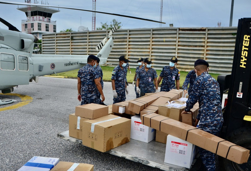 ทั้งนี้กองทัพอากาศได้จัดเครื่องบินลำเลียงแบบที่ 16 (ATR) ในการลำเลียงอุปกรณ์ทางการแพทย์ ประกอบด้วย เครื่องช่วยหายใจ High Flow จำนวน 6 เครื่อง, หน้ากาก N95 จำนวน 3,000 ชิ้น, ชุด PPE จำนวน 300 ชุด และอุปกรณ์ปกป้องทางเดินหายใจแบบอากาศบริสุทธิ์ (PAPR) จำนวน 3 เครื่อง ไปส่งมอบให้กับโรงพยาบาลในพื้นที่จังหวัดชายแดนภาคใต้ เพื่อช่วยเหลือผู้ป่วยโรคโควิด-19 ซึ่งเป็นภารกิจเร่งด่วน