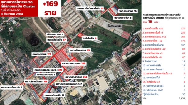 สำหรับข้อมูลผู้ป่วยยืนยันในวันนี้พบผู้ป่วยสูงสุดที่อำเภออรัญประเทศ23ราย เฉพาะที่ชาวกัมพูชาที่ตลาดโรงเกลือ169ราย ทำให้ตอนนี้คลัสเตอร์ตลาดโรงเกลือ มีผู้ป่วยยืนยันรวมทั้งหมด 1,433 ราย หรือคิดเป็น 1 ใน 3 ของผู้ป่วยในจังหวัดสระแก้ว ส่วนผู้ติดเชื้อ 1 รายของอรัญประเทศเป็นเภสัชกรชาย51ปี ขายยาอยู่ในโลตัสอรัญประเทศ คาดว่าสัมผัสเชื้อมาจากลูกค้าคนหนึ่งขณะมาซื้อยาแล้วมีอาการไอผิดปกติ หลังจากนั้นจึงไปตรวจ ATK พบผลบวก ในขณะที่อำเภอตาพระยาวันนี้พบผู้ป่วยสูงสุดจากกรณีสัมผัสผู้ป่วยยืนยันวงแรกเป็นครอบครัวของญาติบ้านข้างๆ