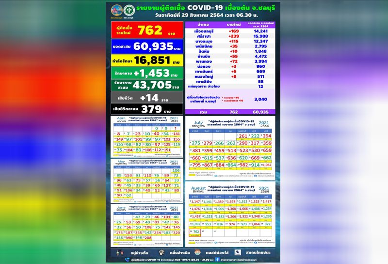 ชลบุรีโควิดเพิ่ม762ค้นหาเชิงรุกกว่า500