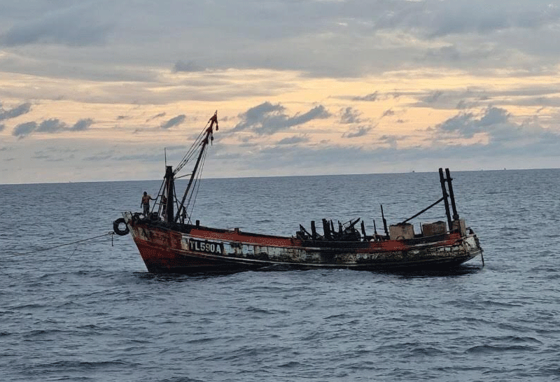 เมื่อช่วงกลางดึกที่ผ่านมา ทางศูนย์อำนวยการรักษาผลประโยชน์ของชาติทางทะเลภาค 2 ได้รับแจ้งนายอดุลย์ เจ้าของเรือประมงชื่อ ฮ.ธวัชชัยนาวี 7 ว่าเรือของตนได้เกิดเหตุเพลิงใหม่ ในขณะเติมน้ำมันกลางทะเล ซึ่งอยู่ห่างจากปากอ่าวปัตตานีประมาณ 60 ไมล์ ทำให้ลูกเรือทั้ง คนไทย และชาวเมียนมา รวมแล้ว 12 คน รีบกระโดดลงจากเรือเพื่อขึ้นไปยังเรือเติมน้ำมันเขียว ชื่อวีนัส ทำให้ลูกเรือปลอดภัย