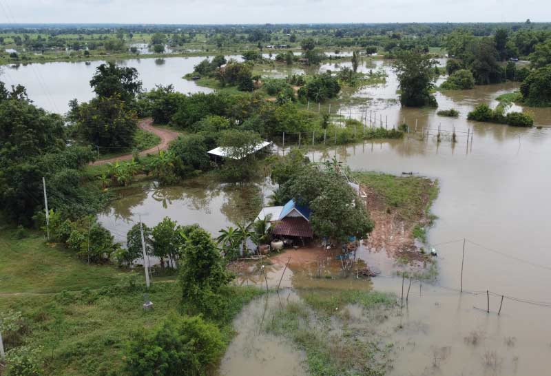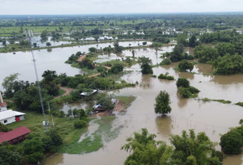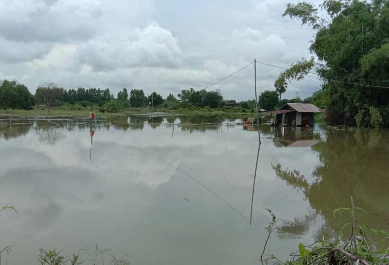 น้ำลำมูลเอ่อ ! ท่วมบ้าน วัดที่อยู่ริมฝั่งมูล ในอำเภอโนนสูง ขณะที่นาข้าวเสียหายจำนวนมาก