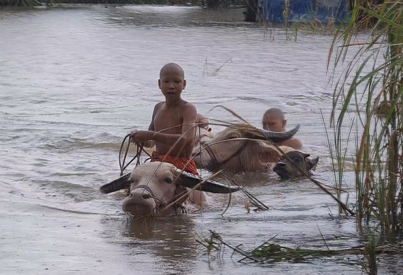 มวลน้ำดังกล่าวได้ไหลทะลักเข้าท่วมในพื้นที่ บ้านหางคลอง ม.5 ต.บ้านกล้วย อ.เมืองสุโขทัย ทำให้ชาวบ้าน ต้องรีบขนย้ายข้าวของจำเป็นขึ้นที่สูง นอกจากนี้ที่วัดพลายชุมพล ม.5 ต.บ้านกล้วย พระปลัดวัฒนา สิริสุวัณโณ เจ้าอาวาส พร้อมพระลูกวัด ช่วยกันขนกระสอบทรายมาทำเป็นแนวกั้นน้ำ และต้องรีบขนย้ายควายเผือก ที่ทางวัดเลี้ยงไว้ในคอกหลังวัดที่เป็นพื้นที่ต่ำ จำนวน 6 ตัว มีหนึ่งตัวที่ท้องแก่ใกล้คลอด และลูกควายเผือกอีก 1 ตัว ลุยหนีน้ำสูงกว่า 1.50เมตร ออกมาอยู่บนที่สูงที่ทางวัดจัดเตรียมไว้ให้ควายเผือกทั้ง 6 ตัวอยู่ เป็นการชั่วคราว จนกว่าน้ำจะลดลง