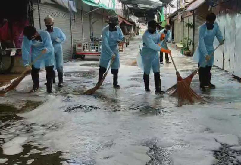 โคราชระดมกำลังทำความสะอาด ฆ่าเชื้อในตลาดสุรนารี หลังพบติดเชื้อลามไม่หยุด ล่าสุดพบเชื้อลามไปติดโรงงานและตลาดสดในพื้นที่อีกหลายแห่ง